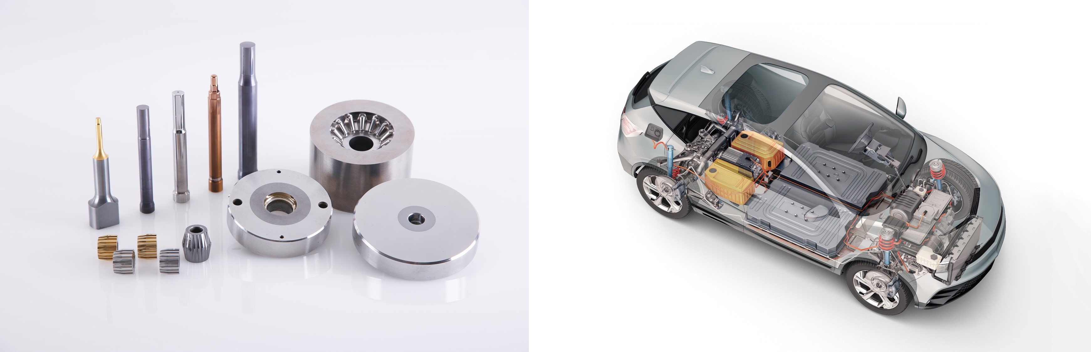 冨士ダイスの金型は、内燃機関やEV化を主とした次世代自動車等の 様々な自動車部品の製造工程で使われています。 |